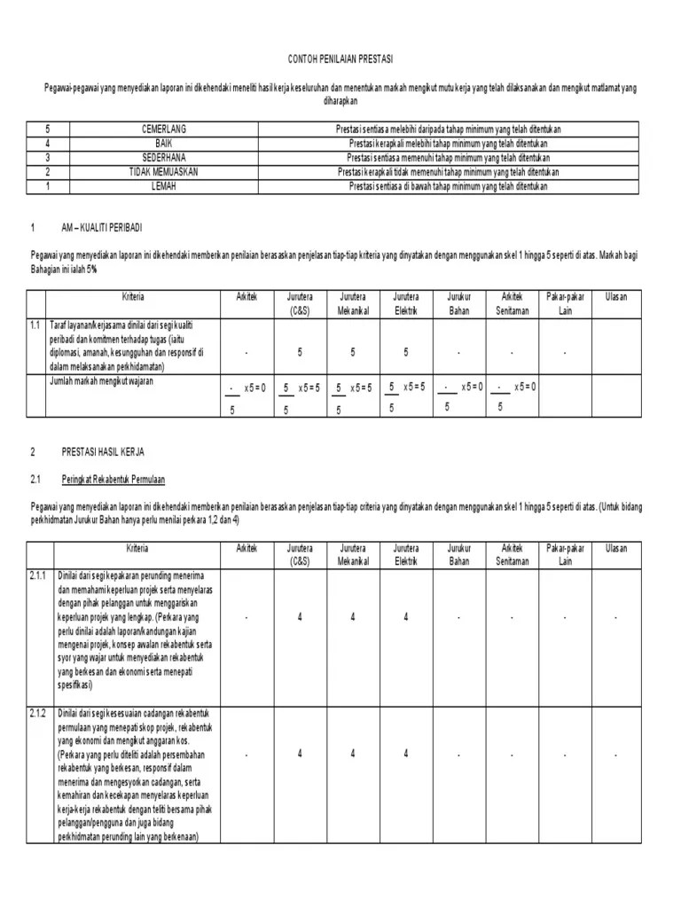 Contoh Borang Penilaian Prestasi Kerja : Contoh Borang Penilaian Prestasi Pekerja Swasta / BORANG